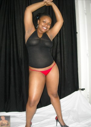 Dark-skinned plump in narrow red panties